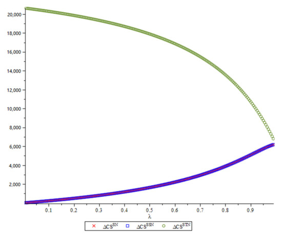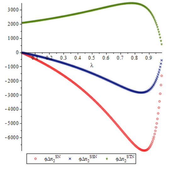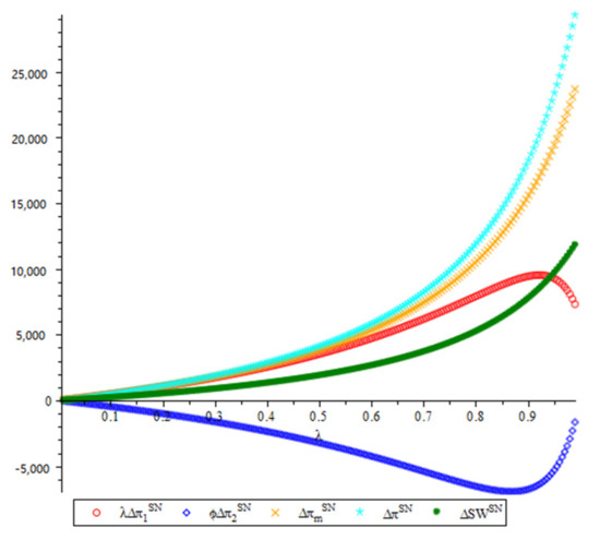 Social welfare change of the whole supply chain with λ before and after subsidy.
