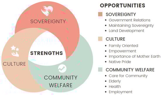 To successfully create sustainable infrastructure systems in Native American communities in Southern California, it is important to not only highlight challenges and issues but also opportunities to draw from the strengths of these communities and cultures. While all native tribes and communities are different, research participants emphasized the importance of leveraging their cultures, sovereignty, and care for the welfare of their tribal communities for more sustainable infrastructure systems (Figure 2).