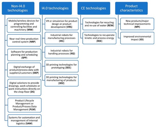 3.3.2. Relations between Use of I4.0, Non-I4.0, CE Technologies, and Product Characteristics (Research Model 2)