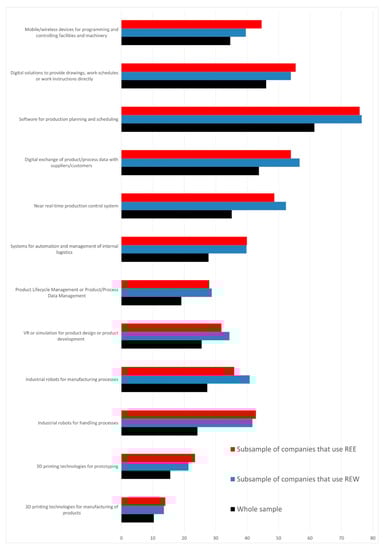 | Technology | Whole Sample | Subsample of Companies That Use REW | Subsample of Companies That Use REE |