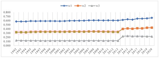 The value of in w2 is defined as , where represents the spatial distances between regions, and in w3 is defined as , where represents the economic level of a region.