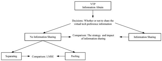 In this paper, we study two different information-sharing formats. The first format is “no information sharing”, which occurs when the virtual technology platform ex ante commits to not sharing the consumer virtual technology preference. The second format is “information sharing”, in which the virtual technology platform promises to reveal the true information after obtaining it, and the brand owner adjusts its pricing plan accordingly. We aim to investigate whether platforms should share their private information (consumer virtual technology preference) with upstream brands and examine the impacts of different information-sharing formats on supply chain participants.