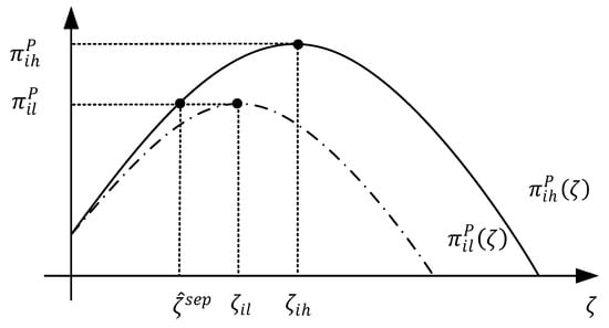 This situation allows the brand owner to identify the type of virtual technology investment of the VTP accurately when they observe the VTP’s virtual technology investment. The principle of belief updating for the brand owner is that in the separating strategy, there is a threshold of investment . When the brand owner observes that the VTP’s investment , the VTP is considered to be of h-type; when , the brand owner considers the VTP to be of l-type.