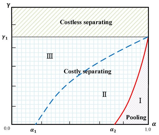 There are two types of separating strategies, costly separating and costless separating. Costless separating means that the separating strategy of the h-type VTP does not require any cost, which means that the difference between the virtual technology investment of the two VTPs is sufficiently high that the l-type VTP cannot mimic h-type VTP. The h-type and l-type VTPs are naturally separated, with no profit loss of the h-type VTP. In a costly separating, the h-type VTP’s investment requires a distortion to the optimal investment. The h-type VTP will distort their investment upward to increase the l-type VTP’s cost of mimicking. To successfully separate himself from the l-type VTP and reveal their preference information type accurately, the h-type VTP should pay a signaling cost. Thus, the h-type VTP will weigh the tradeoff between the signaling cost and the benefit of separating.