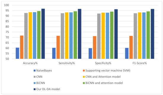 To prove that the proposed model is robust, the experimental results are compared with state of the art models. Figure 8 depicts the comparison of the proposed model with deep learning models for the consumer behavior classifier. The proposed model has a higher performance than state of the art models by more than 8% in accuracy with moderate recall.