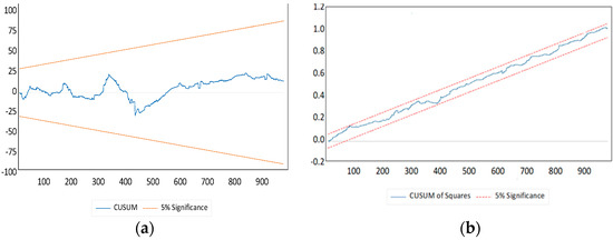 Plot of CUSUM (a) and CUSUMSQ (b).