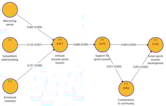 Residents’ support for sports tourism directly affects their contributions to the community.