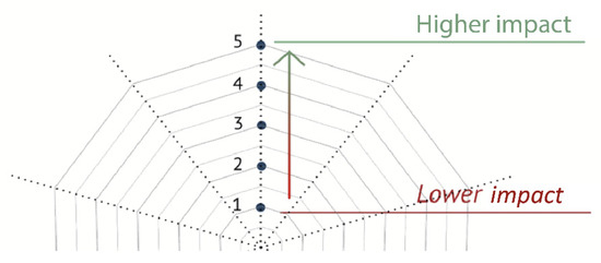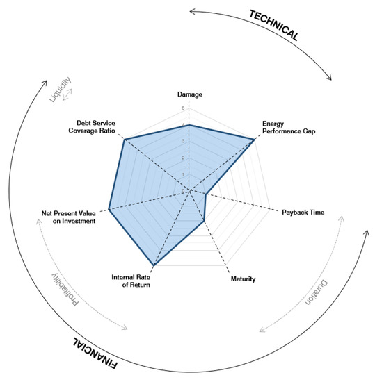 The dimension and the shape of the polygon will be analysed for the comparison of different case studies. The overall quality or desirability of the energy renovation investment is evaluated according to five levels, where 1 is the lowest and 5 is the highest (Figure 3).