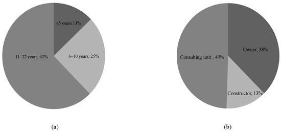 Background of the expert survey: (a) management experience in mega-infrastructure projects; (b) participators in mega-infrastructure projects.