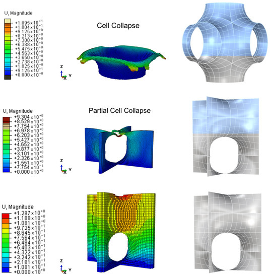 The partial cell collapse occurs exactly for the same reason of the cell collapse. On the contrary, in this case, the cell suffers a deformation only and the printing can be continued even if the result could be different form the designed 3D model. In this case, the limit of the cell size has been reached. If the cell dimension is further enlarged, a collapse would occur. Both partial cell collapse and collapse can be predicted and avoided with the proposed FEM analysis.