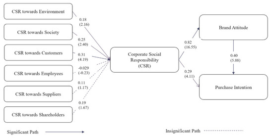 | CSR | 0.77 (28.91) * | 0.70 (14.11) * | 0.80 (19.33) * | 0.82 (16.77) * |