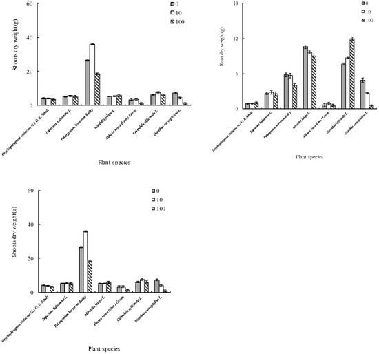 - Dai, H.; Wei, S.; Skuza, L.; Zhang, Q. Phytoremediation of two ecotypes cadmium hyperaccumulator Bidens pilosa L. sourced from clean soils. Chemosphere 2021, 273, 129652. [Google Scholar] [CrossRef] [PubMed]