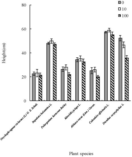 3.1.2. Differences in Height among the Seven Flowering Plants