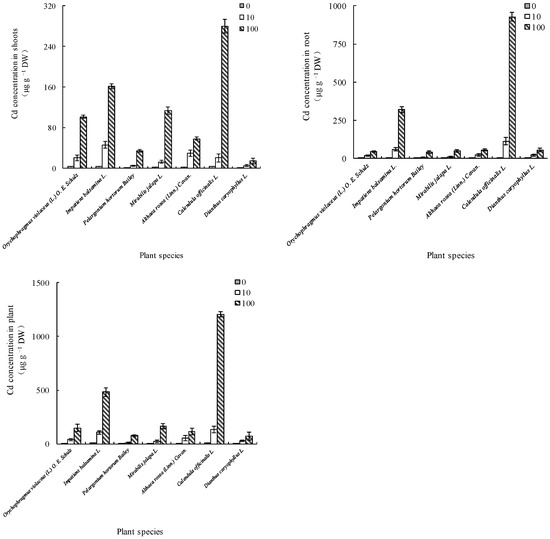 APA StyleLiu, Z., Chen, M., Lin, M., Chen, Q., Lu, Q., Yao, J., & He, X. (2022). Cadmium Uptake and Growth Responses of Seven Urban Flowering Plants: Hyperaccumulator or Bioindicator? Sustainability, 14(2), 619. https://doi.org/10.3390/su14020619