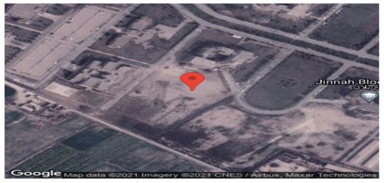 The proposed photovoltaic energy generation plant site is located in front of Department of Electrical Engineering and Technology, GC University Faisalabad new campus with latitude 31.3876587431 and longitude 73.026295403 in Punjab Province, Pakistan—as shown in Figure 1. The proposed site has 129,201.6 ft2 of land and it is come under the non-forest zone. The proposed site is well-connected to transportation options with convenient access to major highways and railways.