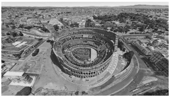 Until recently, high-definition aerial photographs or satellite pictures were available only to a few users. Today, everyone who has access to the Internet may see them with no limitation. Google Earth VR is an example of one of the most popular applications of this type, and constitutes “a vivid 3D computer map” of the whole Earth (Figure 1, Figure 2 and Figure 3) [35].