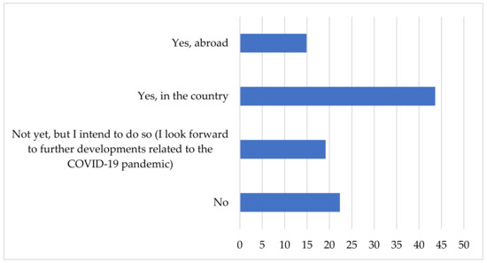 - Roman, M.; Niedziółka, A.; Krasnodębski, A. Respondents’ Involvement in Tourist Activities at the Time of the COVID-19 Pandemic. Sustainability 2020, 12, 9610. [Google Scholar] [CrossRef]