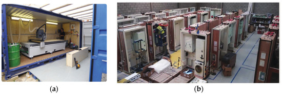 Other systems employing techniques such as 3D printed construction [15] and containerised CNC [16] processes are further examples where mobile factory systems have been employed to deliver manufacturing systems more effectively as an on-site activity. Examples of different approaches to mobile manufacturing can be seen in Figure 2, Figure 3 and Figure 4.