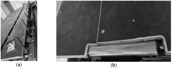Due to the considerable loads needed to manipulate the panel during these live tests, and through the experience gained during prototyping, particular care was given to the operation of the hydraulic system. Flipping and tilting the panel in the assembly process was considered the most complex manipulation of the panels in the assembly process. With the table (Figure 12, component six) in the horizontal position, the sole/base of the panel is located against stopper/rollers (Figure 16a). To move the panel into the vertical position (85 degrees) took the system approximately one minute before coming to rest. The volunteers then pushed the panel on the rollers into a temporary ‘toast rack’ structure. The table returned to horizontal under the self-weight of the table. No significant issues were recorded in the panel flipping process.