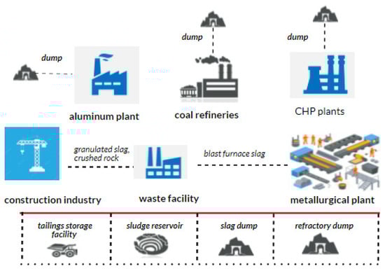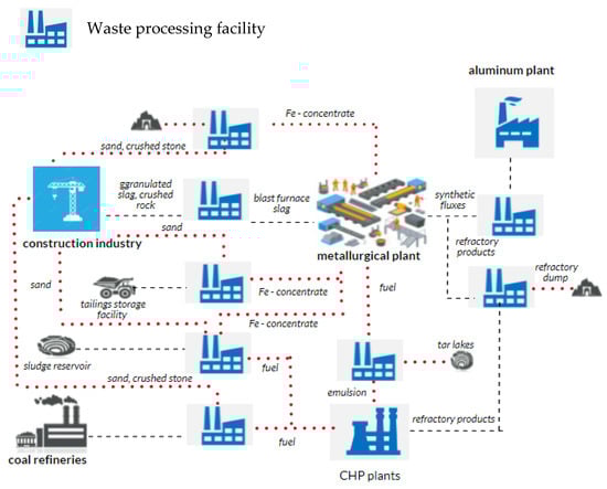 When creating a closed-loop resource flow, the amount of waste generated and presented in the environment should tend to zero, i.e., the waste management system ensures the fulfillment of → 0 condition. Therefore, recycling involves the generated and accumulated production and consumption waste with further production of secondary raw materials and products based thereon that replace primary raw materials and other technological components of the ecosystem facilities. It is feasible since the waste treatment of industrial enterprises consists of, first of all, the extraction of the components contained therein, being technological value for these industrial enterprises [].