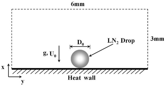 - Zhao, K.; She, Y.-Z.; Jiang, Y.-L.; Qin, J.; Zhang, Z.-H. Numerical study on phase change behavior of liquid nitrogen droplets impinging on solid surface. Acta Phys. Sin. 2019, 68, 244401. [Google Scholar] [CrossRef]