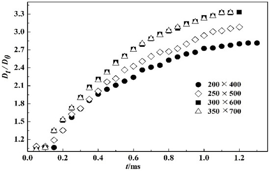 3.1. The Effect of Initial Velocity and Diameter of Droplets