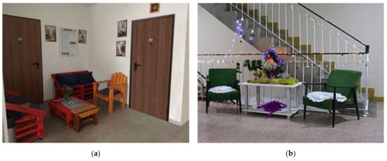 Planning and designing common rooms in MFABs intended for intensifying the social life of the occupants was an obligation during the socialist housing construction in the former Yugoslavia. They were used for children and youth gatherings, social activities of adults, as well as for children and adults’ care [49], and their role was to improve housing conditions and reduce the alienation of people in large buildings. As such common areas were not privately owned, but were available to all occupants of the building, frequently, they were not adequately used and maintained, which inevitably resulted in the so-called “tragedy of the commons”. Current domestic legislation in the field of housing construction does not recognize the need for designing these types of premises in MFABs [54]. However, spaces intended for the social activities of residents are still used in some buildings (Figure 8).