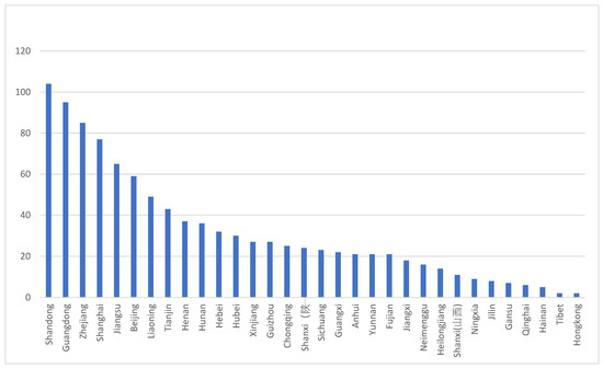 Regional distribution of commodity exchanges in Chinese regions. Reproduced from: China Logistics and Purchasing Network, http://www.chinawuliu.com.cn accessed on 23 September 2021.