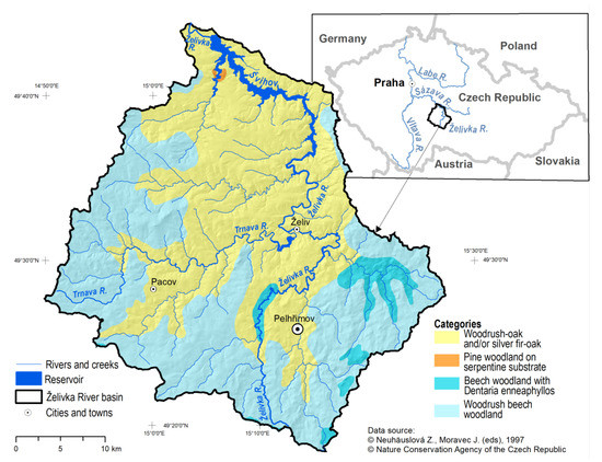 - Neuhäuslova, Z.; Moravec, J.; Chytry, M.; Lozek, V. (Eds.) Map of Potential Natural Vegetation of the Czech Republic; Nature Conservation Agency of the Czech Republic: Prague, Czech Republic, 1997. [Google Scholar]