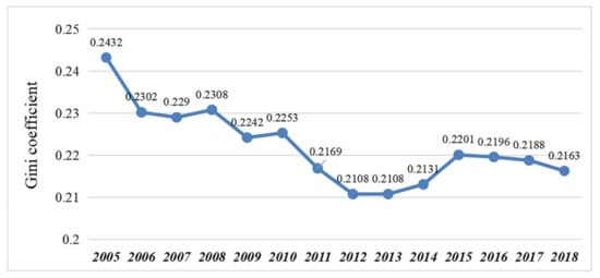 There are many indicators to measure regional differences, among which the Gini coefficient is a widely used macroeconomic index to measure the degree of equality of social income distribution [45,46,47,48]. It is mainly used to evaluate the evolution of inequality in a country or region, or to evaluate the relative degree of inequality among various countries or regions. This method can be applied to both developed countries with unitary social structure and developing countries with pluralistic social structure. Its limitation lies in that it does not fully and adequately reflect the severity of the gap between the rich and the poor. In this paper, Gini coefficient is used to measure the difference between urban and rural disposable income in Shanghai, which proves that industrial concentration can narrow the difference between urban and rural disposable income to some extent.