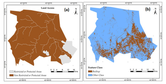 Restricted/Protected area (a) and builtup (b) in Abha-Khamis Mushyet cities.