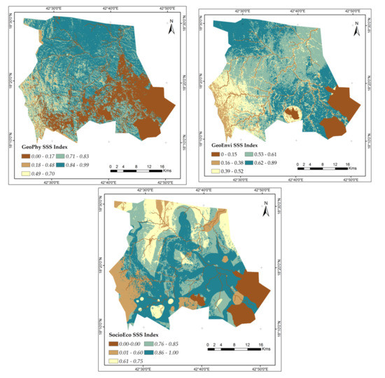 where, the weight and scaled value of the theme (theme) assigned to each pixel, respectively, and SSPI is the safe site potential index as calculated from Equation (6).