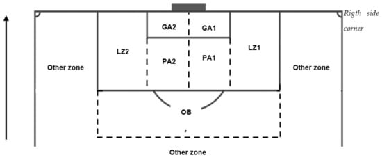 The data were collected using a spread sheet created in Microsoft Office Excel (Version 16.5, Microsoft Corporation, Redmond, WA, USA). It was used as a notational analysis tool that was built by a panel of experts comprising two UEFA PRO licensed football coaches, using several performance indicators considered important in corner kicks from a practical point of view. All the criteria of each variable and respective descriptors were discussed and then defined to increase clarity and minimize misinterpretations when analyzing the data (Table 1). Eight variables were chosen to perform the analysis (Figure 1). The “corner side” was defined as the side at which the attacking team’s corner kick took place (left or right). The second, “type of delivery” related to the style of corner performed by the attacking team (direct outswing, direct inswing, short or others). The third variable, “zone of the delivery” (Figure 1) was described as the area in which the ball was first contacted or not contacted following the corner delivery, relating to a number of predefined areas (goal area—GA1 and 2; penalty area—PA1 and 2; lateral zone—LZ1 and 2; OB—out of the box; “other zone” and “outside”). If the ball was delivered directly to the outside of the pitch it was considered “out or loss of the ball”. The “short delivery” was characterized as the ball being touched towards a teammate near the kicker. It must be noted that when the ball was delivered and reached one of the defined zones following a “short delivery”, then this was included in the “zone of delivery” analyses. The “number of attackers” variable aims to register the players who effectively try to attack finalization zones with the intention of scoring. The “player of the first touch” describes the player who first touches the ball following the corner kick (“attacker”, “defender”, “goalkeeper” and” other”). The “finalization zone” is characterized by the area in which an attempt at goal is made (refer to “zone of delivery” for each of the zones). “No finalization” is defined by no shot at goal being achieved following the corner kick. Each corner was analyzed from the moment that ball was touched until the end of the play, which was considered when at least one of the following events occurred: (i) the ball left the pitch; (ii) the defending team won the ball or the attacking team scored; and (iii) when both teams lose their specific formation for the corner kick (i.e., when the phase of play for the corner kick naturally terminates and open play resumes).
