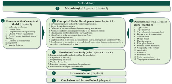 To define out methodology, two fundamental concepts were used: systems theory and modeling theory. Systems theory is a basic science that describes many individual phenomena through general basic concepts. In the theoretical–cybernetic approach of a system, organizations are understood as open, dynamic, and complex systems that are subject to permanent changes and their own goal-oriented dynamics [54]. The methodological approach for this research paper is shown in Figure 1 and explained later.