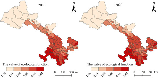 Spatial-temporal pattern of ecological functions in 2000 and 2020.
