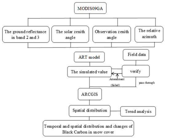 Based on the above data and formula, we analyzed the BC concentration of snow cover in northeast China, and the research framework is shown as follows (Figure 3):