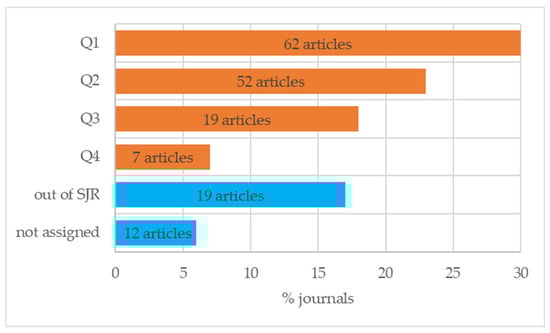 The 171 selected articles were evaluated for their scientific quality according to the position in the Scimago Journal & Country Rank (SJR) of the journal where they were published. Only two indicators were used, the quartile and the H-index of the journal. If the journal was not part of the SJR base or was not ranked, it was flagged.