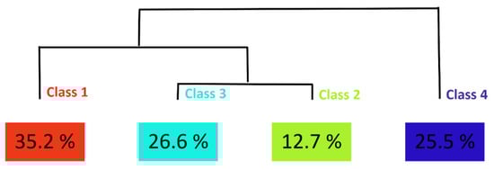 The dendrogram of the clusters obtained with IRaMuTeQ (Figure 6) shows four clusters created from branch divisions of studies from the sampled papers. One branch includes Clusters 1 to 3, whereas Cluster 4 belongs to a single branch. The numbers in each bar correspond to the percentage of words in the abstracts associated with each cluster. Cluster 1 is the largest one with 35.2% of the 4075 active forms. The color scheme aims to facilitate visualization.