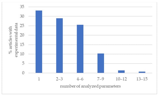 The experimental measurements reported in the sampled papers were analyzed to assess the range of results obtained for the most represented parameters (Table 1).
