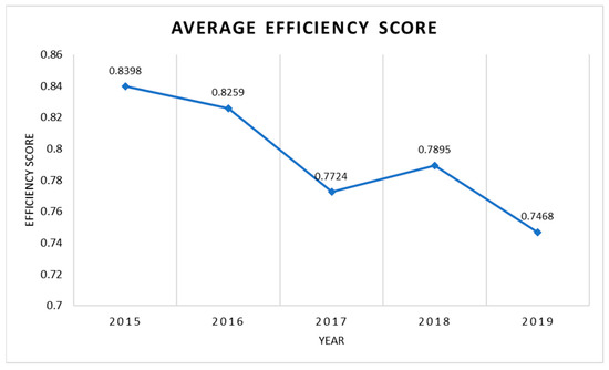 The trend of efficiency score of the land transportation for each year from 2015 to 2019 by countries is visualized in Figure 3. The results show that a general decreasing trend of efficiency of the land transportation system. It can be seen clearly in most countries such as Belgium, Czech Republic, United Kingdom, Germany, Denmark, and Turkey. From 2016 to 2019, the efficiency score of Austria, Greece, and Norway is less than 0.5.