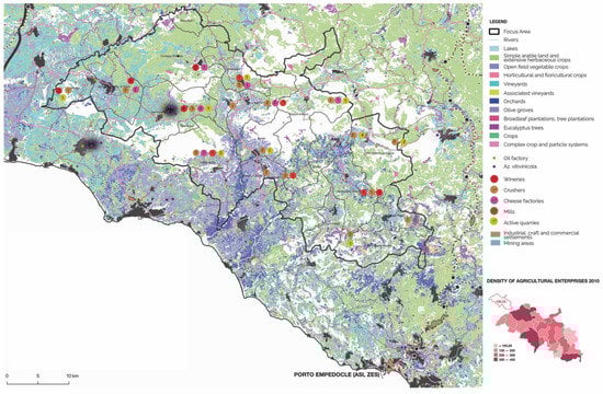- D’Anna, G. Paesaggi Minerari in Sicilia: Da Residuo a Risorsa. Strategie e Progetto di Recupero per il Parco Minerario Floristella-Grottacalda. Ph.D. Thesis, Arti e Pianificazione, Dipartimento di Architettura, Università degli Studi di Palermo, Palermo, Italy, 2017. [Google Scholar]