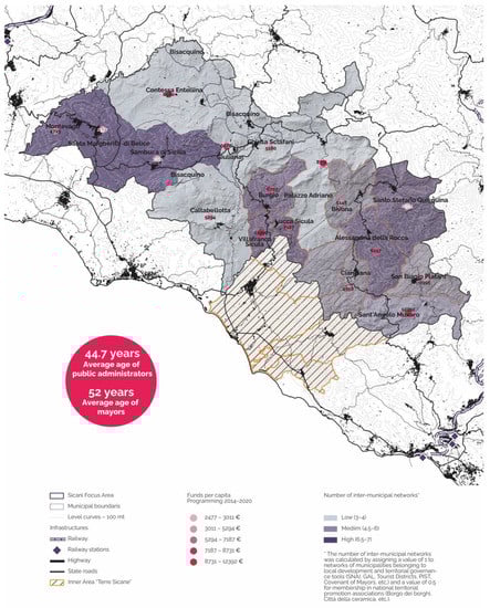 Among the various territorial coalitions resulting from local development programs and community initiatives that have been activated in the territory, the Sicani inner area stands out for its relevance, on the one hand, which is one of the five inner areas of the regional territory identified within the SNAI, and on the other hand, the ‘GAL Sicani’ (LAG), which has distinguished itself for a lively planning activity developed in the last two programming cycles.