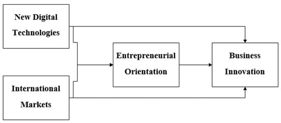 In light of the research discussed above, our underlying model was developed by categorising international markets, digital technologies, entrepreneurial orientation, and business innovation. Therefore, the hypotheses of the present study are as follows: