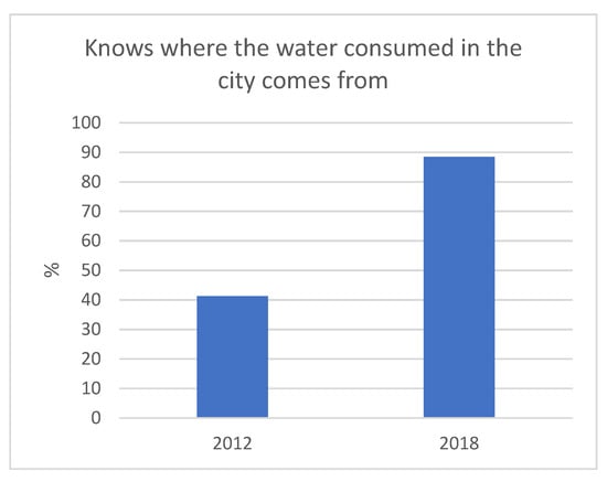 In the City of La Paz, the CSO conducted two surveys (2012 and 2018) (Figure 4) to analyze the citizens´ knowledge regarding the sources of water, its management, and its quality. The 2012 survey evidenced that 59% of those surveyed do not recognize that they live in a semi-desert area, and 57.9% do not perceive water scarcity as a problem.