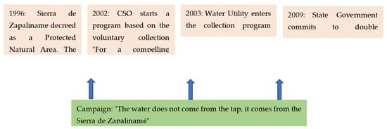 The Watersheds and Cities Program of the Fondo Mexicano para la Conservación de la Naturaleza (FMCN) funds local CSOs to protect and recover the watersheds that supply water to the cities. It is achieved through capacity building, technical assistance, funding and inter-institutional synergies (https://fmcn.org/es/programas-proyectos/bosques-y-cuencas (accessed on 17 July 2020). Since 2001, the program has been applied in 12 watersheds of medium-sized cities in Mexico.