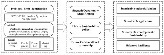 Notably, the research methods were instrumental in providing an insightful analysis at the macro and policy levels. SWOT analysis and the generic foresight process framework were devised as the tools that identify specific strengths, weaknesses, opportunities, and threats from the current situation and link them with sustainability policies and future collaboration and partnership to achieve the goals of sustainable agriculture, industrialization, balance, and resilience.