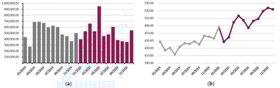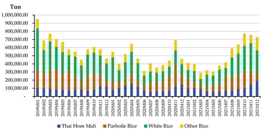 The outbreaks of COVID-19 have severely affected exports of agricultural products and diverse trading partners to various extents. For example, agricultural trading and exporting to China, a major export market of many ASEAN member states, was suspended owing to the high number of infected patients in China and the cancellation of the Chinese New Year celebrations [8]. Multiple city shutdowns, business suspensions, in-house quarantines, and border trade suspensions in many countries in ASEAN also adversely impacted the agricultural export sector and the food supply chain system, from trading to transportation, of all international agricultural products. Consequently, the agricultural export values have significantly decreased. The prolonged COVID-19 pandemic has led many countries to be more concerned with the self-reliance of their food security. For example, the Vietnamese and Cambodian governments were highly concerned about food security in their countries, so they banned their rice exports [30]. As a result, Thailand’s rise exportation increased in quantity and value.