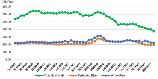 - Arunmas, P. Rice Packers: Prices to Climb for Months. Bangkokpost. 23 March 2020. Available online: https://www.bangkokpost.com/business/1884290/rice-packers-prices-to-climb-for-months (accessed on 26 November 2020).