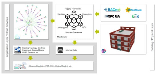 - Mavrokapnidis, D.; Katsigarakis, K.; Pauwels, P.; Petrova, E.; Korolija, I.; Rovas, D. A linked-data paradigm for the integration of static and dynamic building data in Digital Twins. In Proceedings of the 8th ACM International Conference on Systems for Energy-Efficient Buildings, Cities, and Transportation, Coimbra, Portugal, 17–18 November 2021; pp. 369–372. [Google Scholar] [CrossRef]