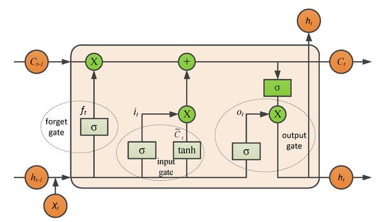 Each of the aforementioned three gate architectures gradually updates the cell state, as shown by the LSTM structural diagram. In the first step, the forget gate determines the information discarded from the cell state